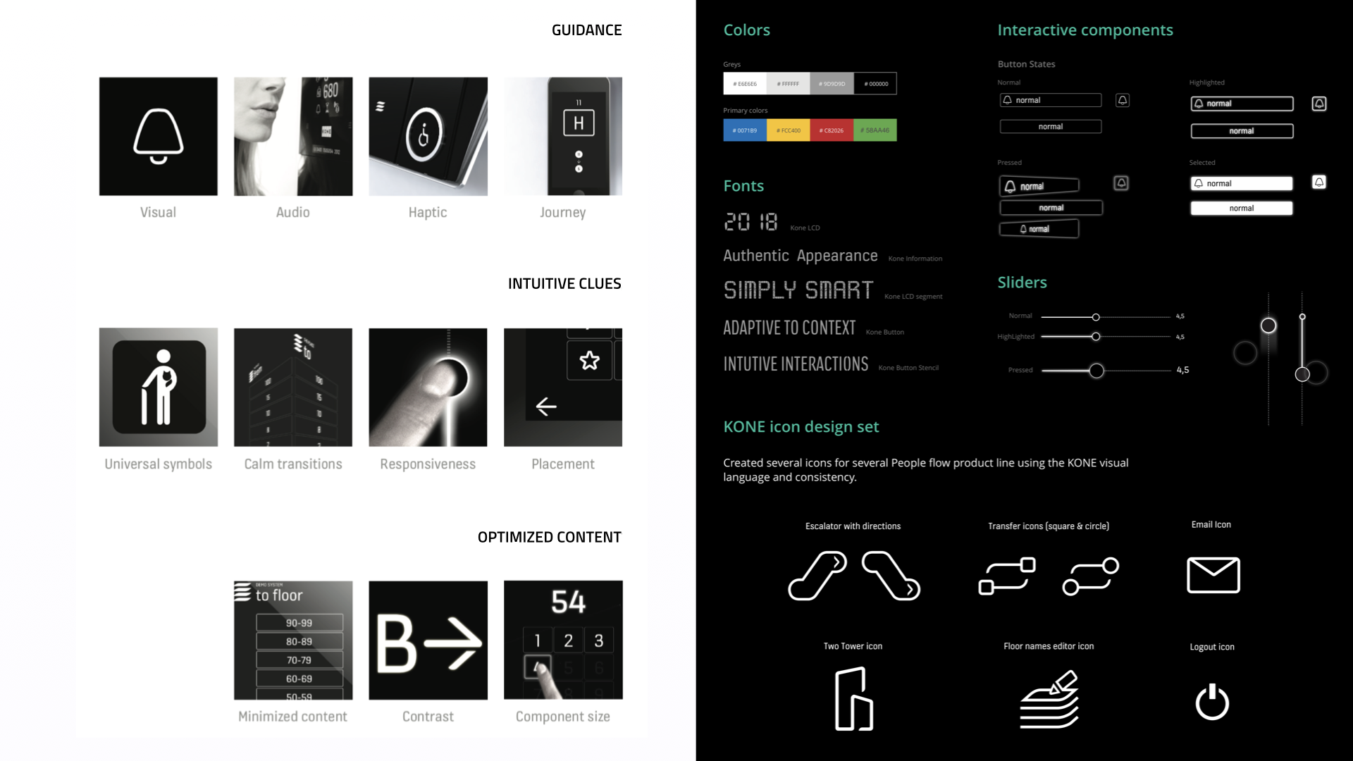 It also included to design for the entire eco-system of KONE guiding devices in the building, which included Security Gates or Doors, Info screens and any other signalization devices.