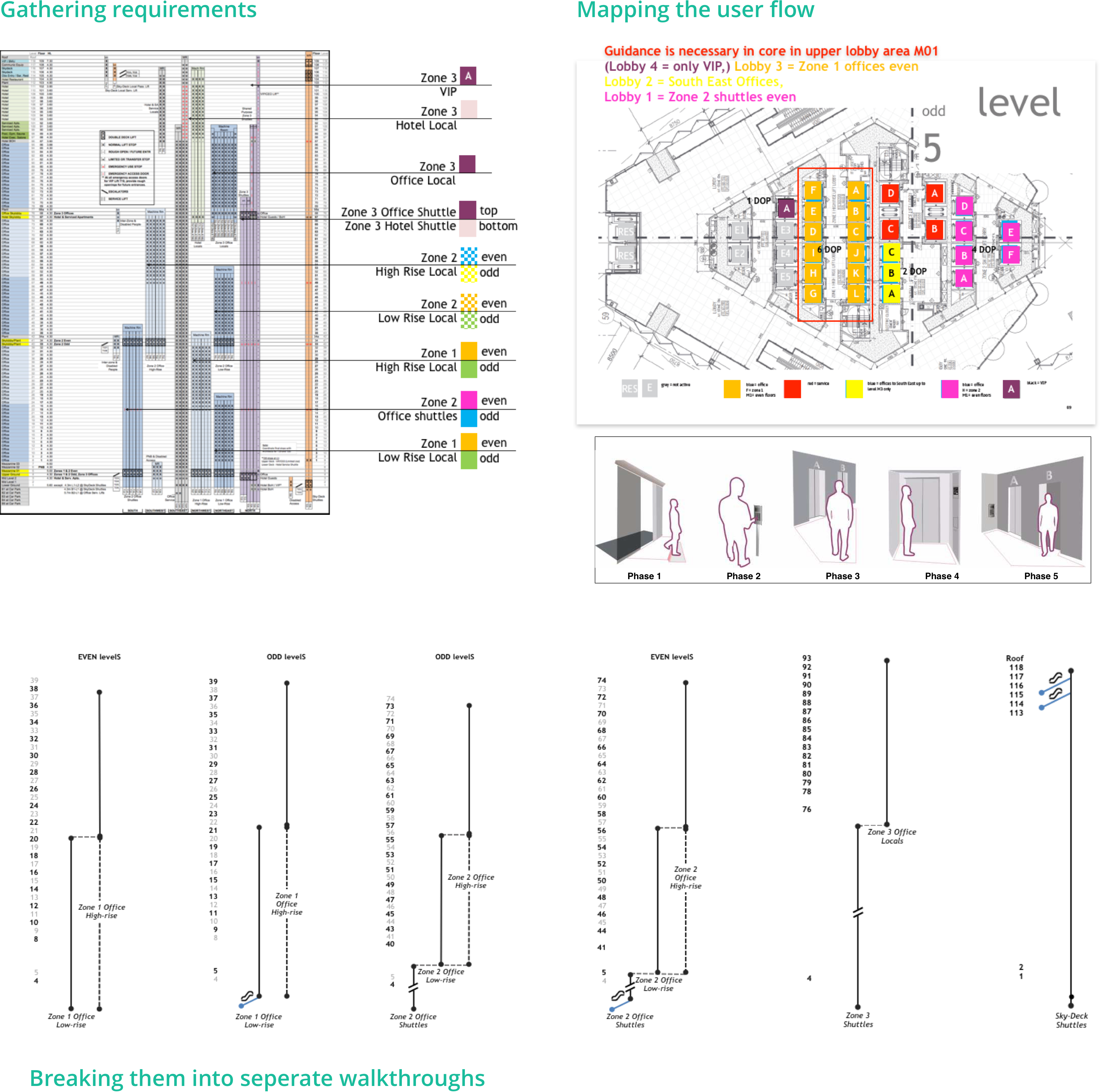 I worked together with requirements manager to collect all use cases. Building had commercial areas, hotels, restaurants and residential areas. All of these had different needs from people flow perspective.
