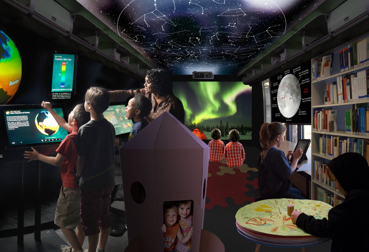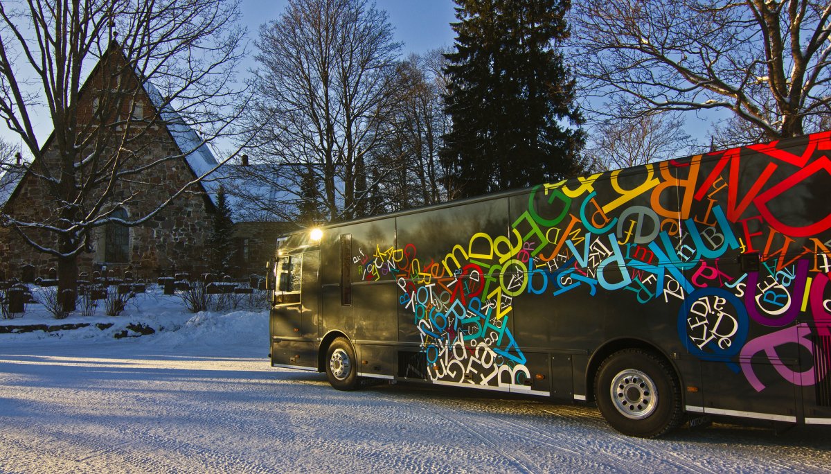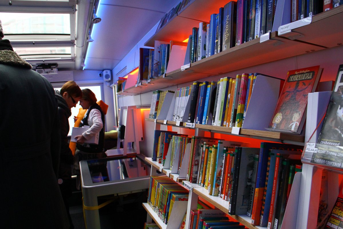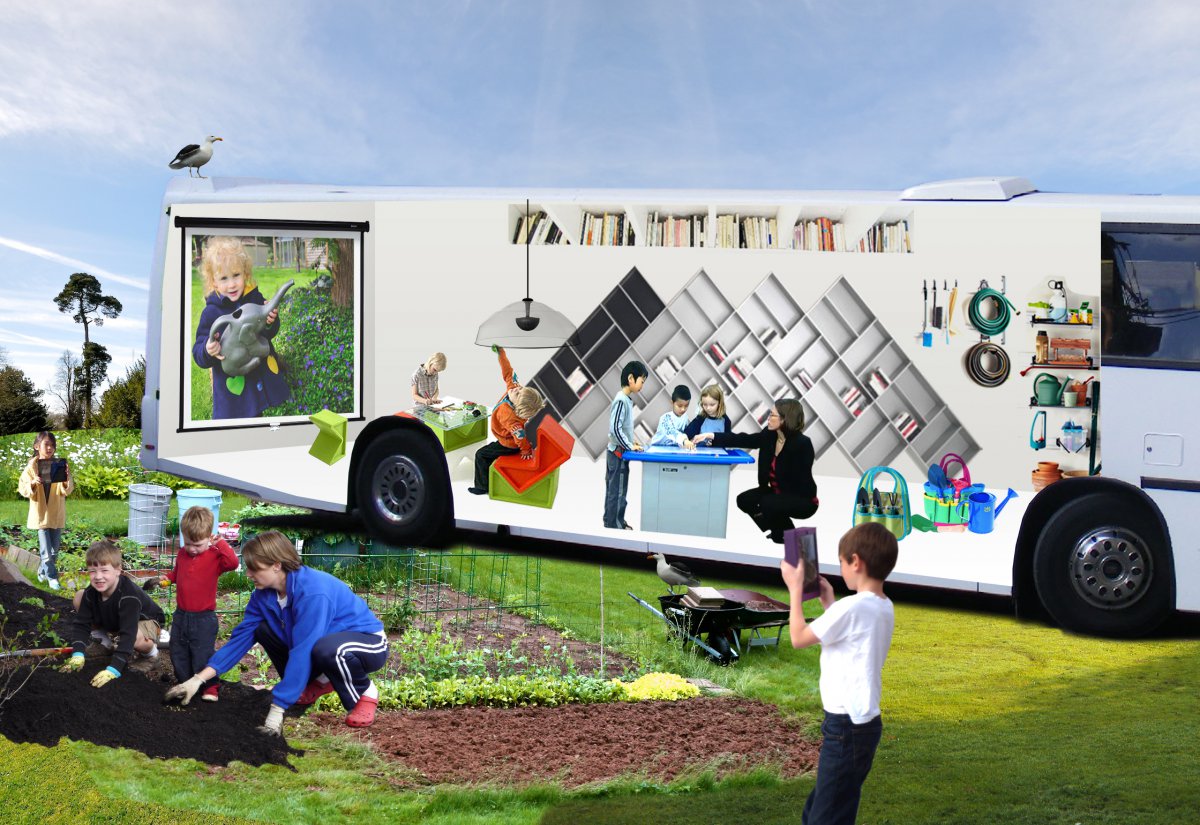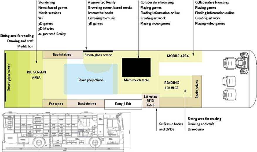 Re-conceptualising the Espoo City Library Bus service for the children of Espoo, Finland in collaboration with LeGroup (Learning Environment Group), Department of Spatial Design, Aalto University and the City Library of Espoo. The bus aims to integrate new media technologies for exciting experiences. The project proposed five themes to revolutionise the library bus service. The bus currently operates in Espoo city since 2013.