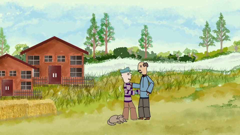 Character development and illustrative backgrounds for a short animation promoting Greencare Finland. The animation is a short story that revolves around a thief, a farm-owner and his dog, and exemplifies the natural therapy aspect of Greencare.