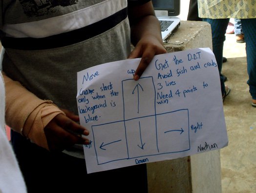 The camp brought to them essential basics of imaginative story-telling, game-strategy and programming logic. The workshop-process and the artistic interventions were conceptualised and driven by me.