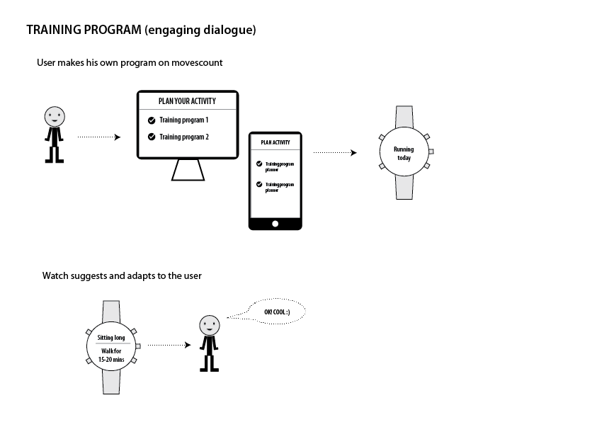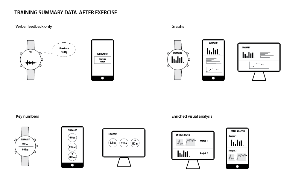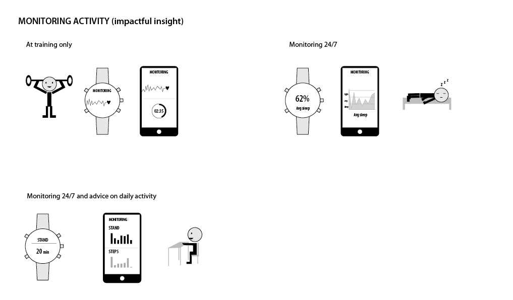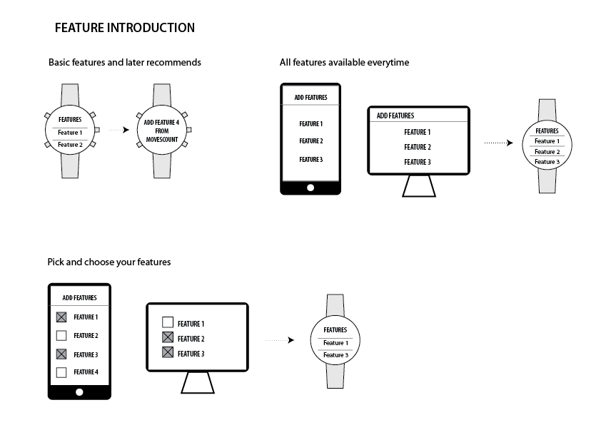 We conducted an internal user study to understand on what kind of features users would like to see in the watches. We wanted to incorporate some of these ideas to the Spartan Ultra. The following scnearios are a result of an internal questionnaire of most wanted fatures. They were used as a tool in the roadmapping phase.