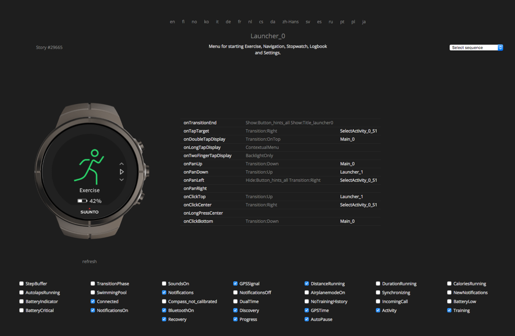 Suunto had a elegant internal system to document and update the design changes on the watch UIs. I used HTML, CSS and basic Java Script to iterate the designs and test the UIs directly on the watch. The final changes were then updated by me to an internal demo tool. This system helped the developers, marketing team and the documentation team to keep up-to-date on the latest design changes that were made to the watch.